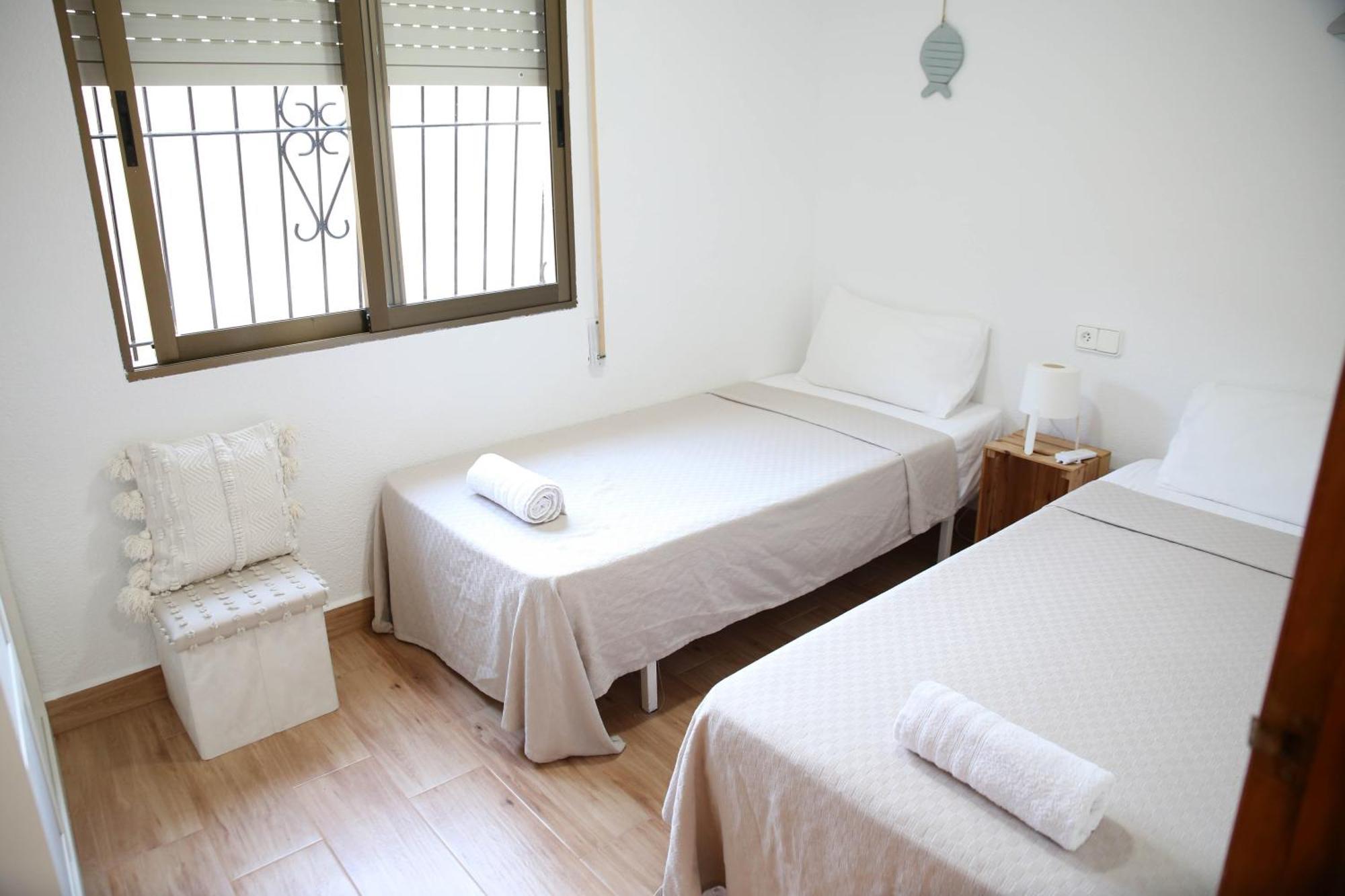 La segunda habitación ofrece dos camas individuales, ideal para amigos, niños o familiares que quieran descansar con total comodidad. Es un espacio acogedor y práctico, pensado para garantizar un descanso reparador tras un día de sol, playa y actividades junto al Mar Menor.